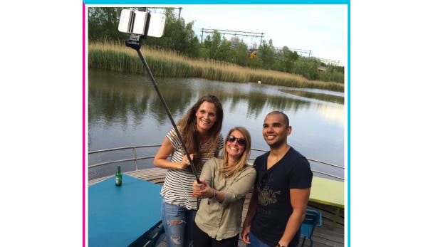 Naast deze leuke apps voor de unieke selfie kun je ook een Selfie Stick gebruiken. Het is een simpel ding, een uitschuifbare stok van ongeveer 1 meter lang met aan het uiteinde een houder voor je mobiele telefoon. Het zijn universele houders dus de meeste gangbare telefoons kun je bevestigen. Let wel goed op dat je alles goed vast draait en klemt voordat je de stick uitschuift.