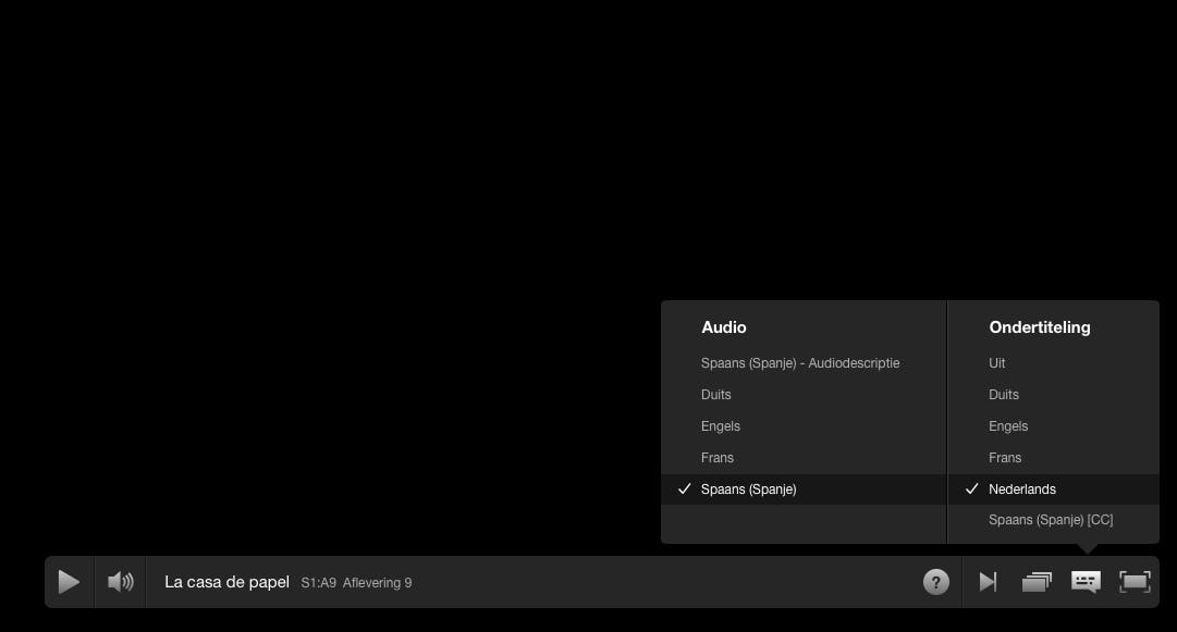 Tijdens het kijken van een film klik je op het ballonnetje om de gesproken taal en ondertiteling te wijzigen