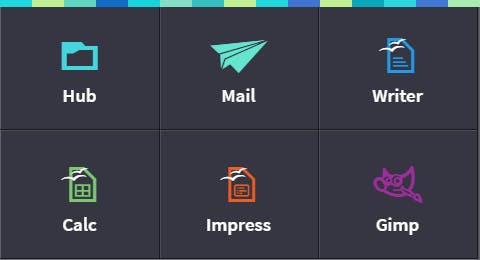In tip 04 hebben wel al één manier aangegeven om nieuwe bestanden in je bibliotheken te plaatsen: via een upload vanaf je eigen toestel. Het is echter ook mogelijk binnen Open365 documenten te creëren of te bewerken en in een bibliotheek te plaatsen, via een van de beschikbare applicaties. Die bereik je via het knopje met de vierkantjes, waarna je in het overzicht de gewenste toepassing selecteert: Writer, Calc, Impress of Gimp (Mail komt even aan bod in ons tekstkader).