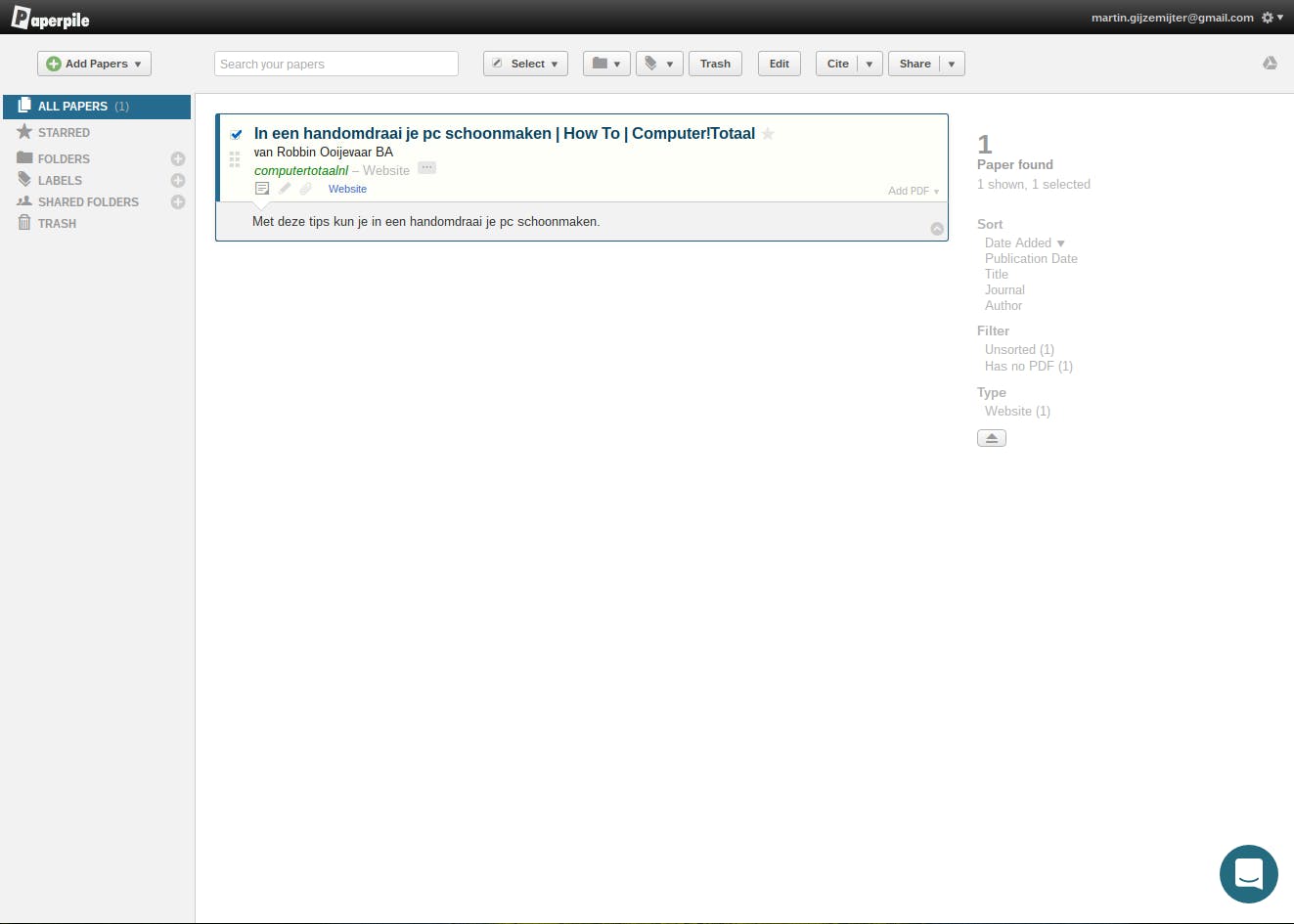 Dit programma is ten eerste heel handig en krachtig omdat het gebruik maakt van Google Drive, hetgeen de schijf in je Chromebook ontlast, maar zelfs op onze desktop zouden we dit programma graag zien. Paperpile is een programma dat vooral handig is als je veel werkt met documenten waarin je andere documenten moet citeren en moet verwijzen naar de bronnen. De app werkt heel eenvoudig, wanneer je een link ziet (naar een website, pdf, enzovoort) die interessant is voor het document of artikel dat jij aan het schrijven bent, dan klik je op Paperpile naast de betreffende link. De inhoud van die pagina, of de gehele pdf wordt vervolgens op je papierstapel gegooid. Wanneer je nu aan je document werkt in Google Docs (dit pakket van Google is wel een voorwaarde in dit geval) dan kun je door middel van het Paperpile-tabblad kinderlijk eenvoudig citeren uit de opgeslagen bronnen, die vervolgens ook nog eens (kunnen) worden toegevoegd aan de lijst met bronvermeldingen. Wie ooit met dit soort verwijzingen heeft moeten werken, weet dat dit je echt een bak met tijd zal schelen. Daar hangt wel een prijskaartje aan. Je mag Paperpile 30 dagen gratis gebruiken, daarna kost het 3 dollar per maand.