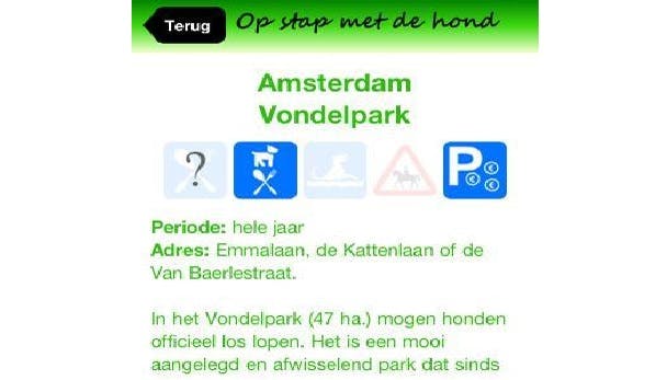 Als je er een aanklikt krijg je informatie over de route/streek. Zo weet je precies wanneer de route open is voor honden, of de hond mag loslopen en of er uitrustlocaties aanwezig zijn om een drankje en een hapje te nuttigen. Je hoeft dus niet bang te zijn dat je hond alleen buiten moet wachten.