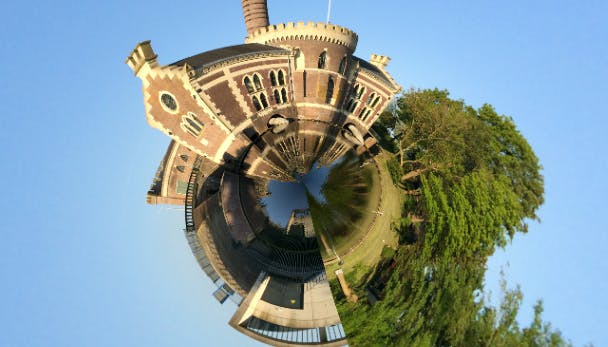 In tip 1 en 2 kon je zien dat je nog best wat stappen in een fotobewerker nodig hebt om een miniplaneet te maken. Met je telefoon kan het een stuk sneller als je Small Planet van Regis Cosnier (gratis voor Android, 0,89 euro voor iOS) gebruikt. Laad een bestaande foto uit je bibliotheek in, veeg en draai met je vinger tot je een mooie planeet op het schermpje ziet en sla het resultaat op.