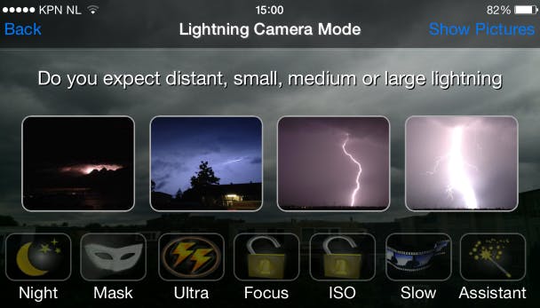 Installeer iLightningCam van Florian Stiassny (1,79 euro). Het enige wat je hoeft te doen is de telefoon op de lucht te richten. Dat mag gewoon uit de hand. Zodra er bliksemschichten door de lucht flitsten, worden deze automatisch door je iPhone vastgelegd. Makkelijker kan het niet. Onweer is levensgevaarlijk, zorg dus altijd dat je vanaf een veilige plek fotografeert en neem geen enkel risico.