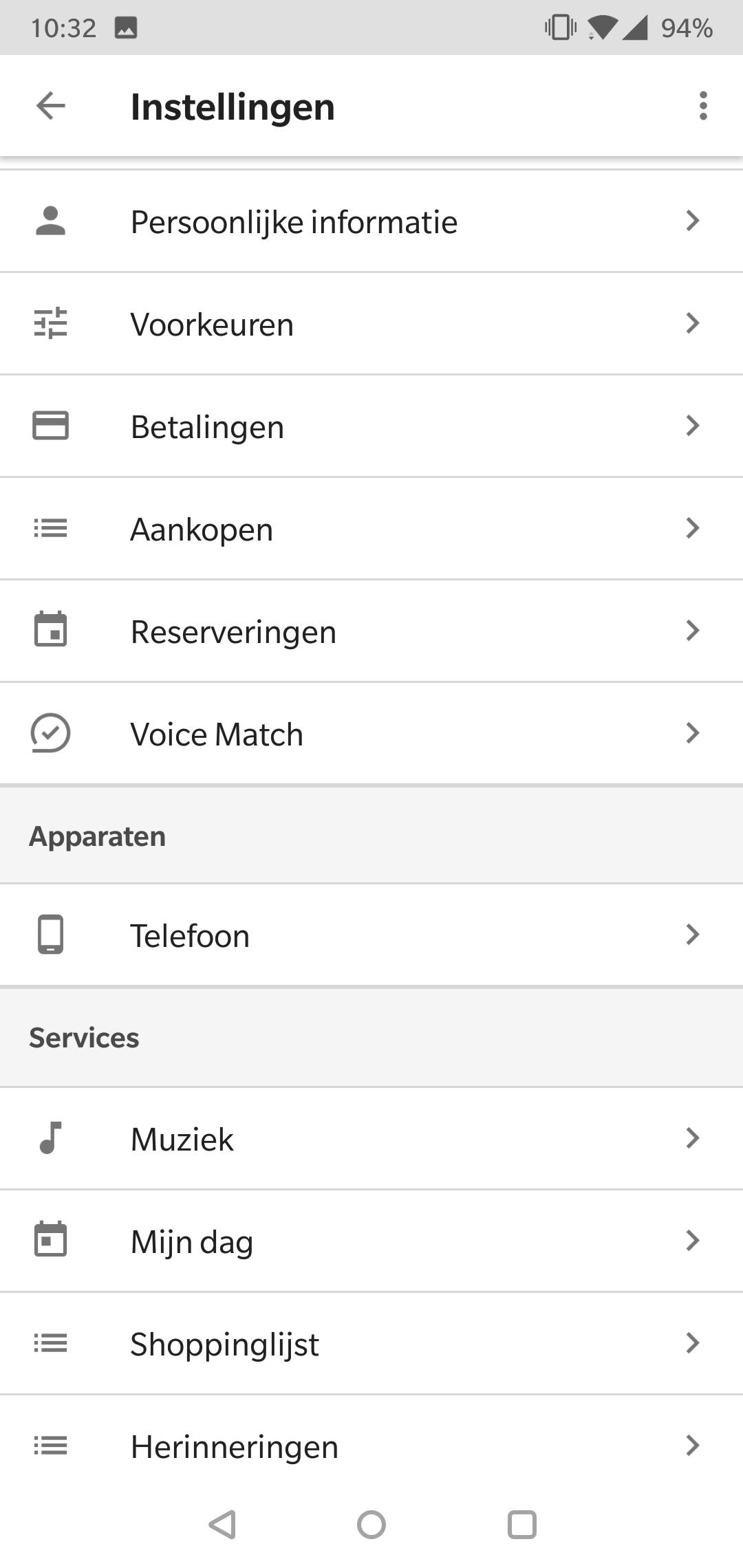 Wel kun je vast het een en ander configureren. Open hiervoor de Google-app, die standaard op alle Android-smartphones en -tablets geïnstalleerd staat. Druk rechtsonder op het menu-knopje (drie horizontale streepjes). Hier kun je de Assistant-instellingen vast raadplegen. Bijvoorbeeld door je Netflix- en Spotify-accounts te koppelen, je vervoersmiddelen in te stellen, woon- en werkadres in te geven, et cetera.