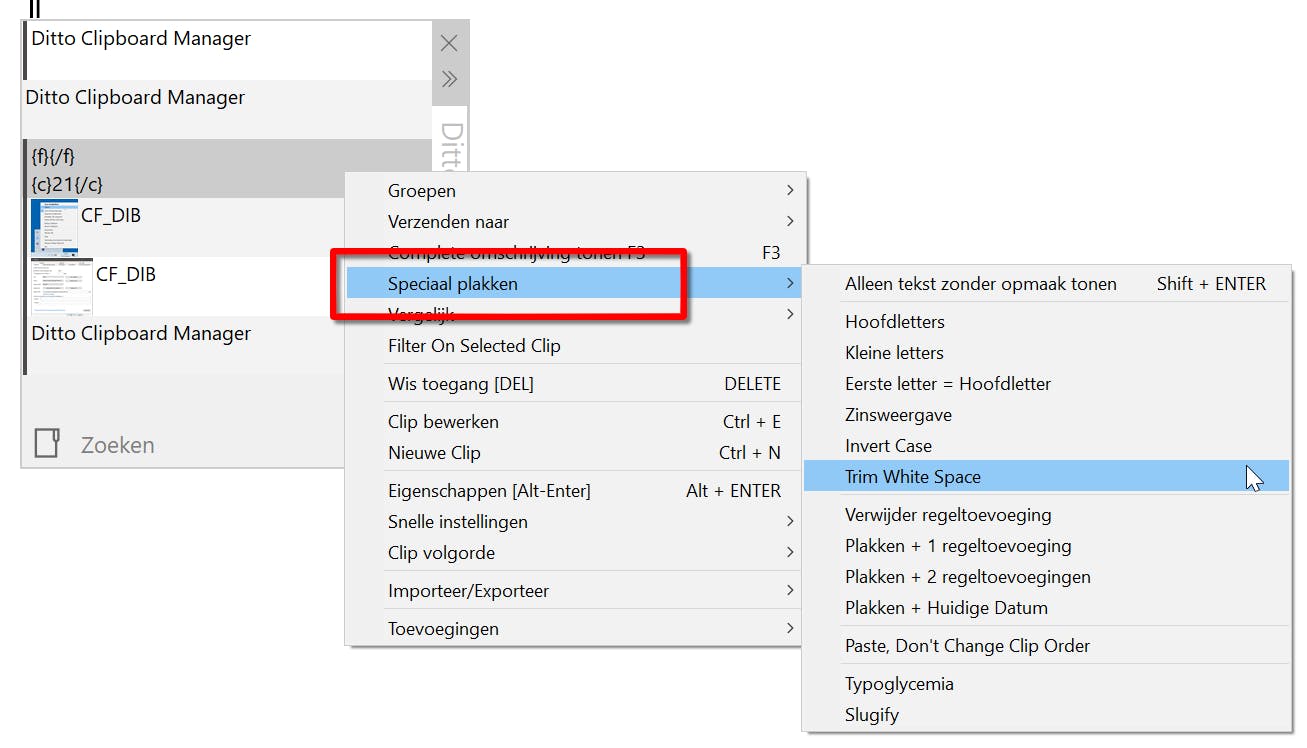 Wat zo speciaal aan de plakfunctie is, is uiteraard afhankelijk van de clip die je wilt inplakken. Met platte tekst is meer mogelijk dan met een afbeelding, maar dat ligt voor de hand. Intussen heb je al een doorkijkje gekregen op alle clips die Ditto Clipboard Manager voor je in beheer heeft. Je kunt onder meer clips weggooien, bewerken, van een titel voorzien of onder een sneltoets plaatsen. Met als belangrijkste eigenschap – we herhalen dat nog maar een keer – het feit dat Ditto Clipboard Manager de clips veilig in een database bewaart: voor hergebruik!