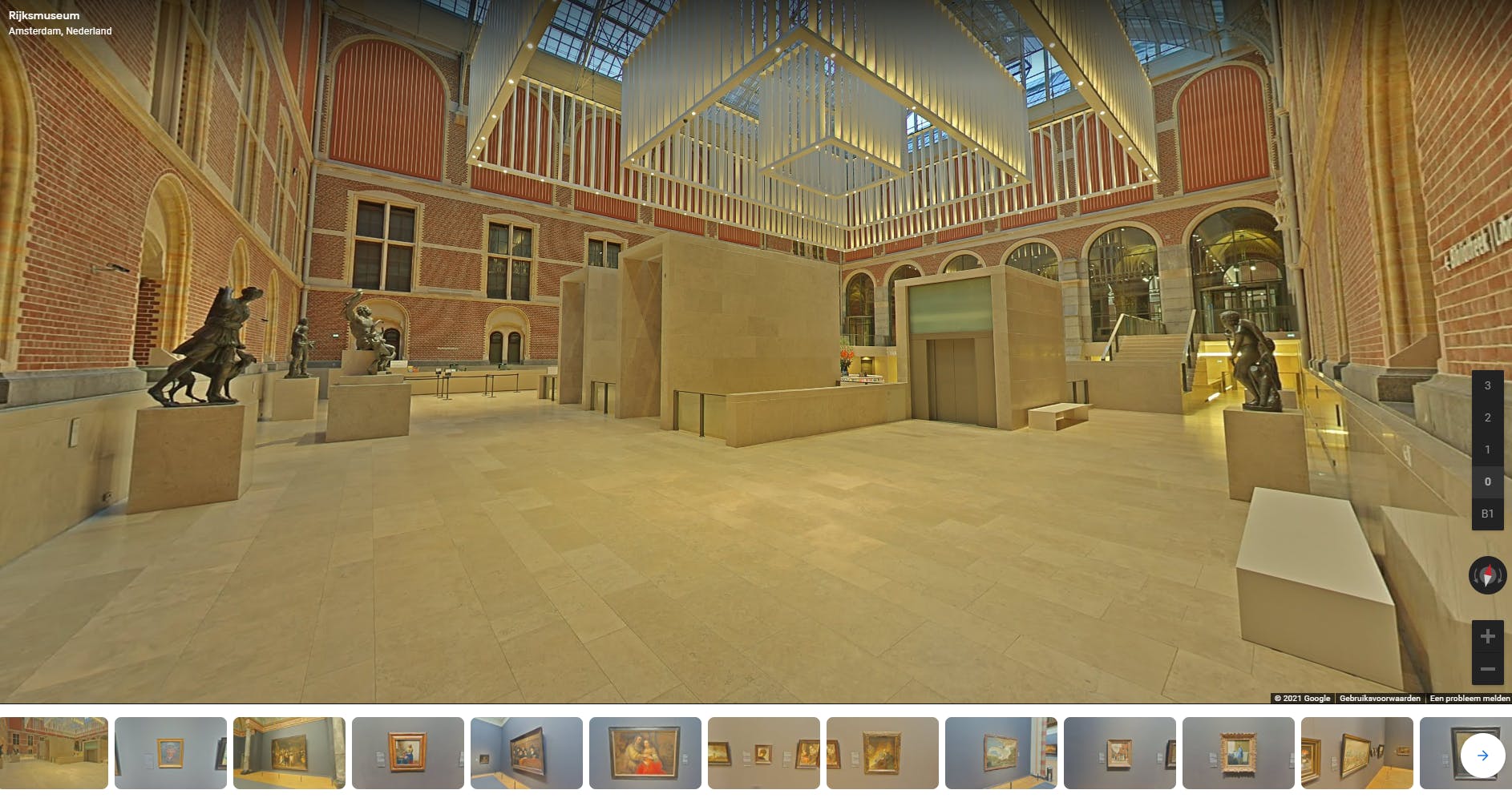 Niet alleen straten zijn met Street View te verkennen, Google maakt ook interactieve opnames van de interieurs van bekende musea. Dit doet het bedrijf onder de noemer Google Art Project. Van sommige musea zijn alleen foto's van bekende kunstwerken gemaakt, maar in bijvoorbeeld het Rijksmuseum is een complete virtuele tour te maken. Klik op deze link en zoek naar een museum of kunstcollectie door je zoekterm bovenin in te voeren.