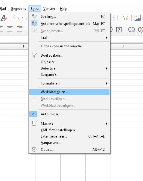 In de spreadsheet-module Calc kunnen meerdere gebruikers gelijktijdig aan hetzelfde werkblad werken. Daarvoor moet elke gebruiker die wil samenwerken een naam opgeven in Extra / Opties / LibreOffice / Gebruikersgegevens. Daarna activeert de degene die het werkblad aanmaakt de samenwerking op dit rekenblad met Extra / Werkblad delen. Hierdoor wordt het document opgeslagen in de modus Delen en dat merk je in de titelbalk. Wanneer een van de gebruikers het gedeelde document opslaat, zal dit document zichzelf updaten, zodat de gebruiker de laatste versie ziet van alle wijzigingen die zijn opgeslagen door alle gebruikers.
