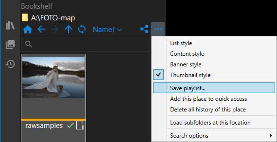 In het linkervenster tref je drie knopjes aan: PageList voor een bestandsoverzicht van de huidige map, History en Bookshelf voor een handig overzicht van de eerder bekeken mediabestanden. Klik bij Bookshelf op het knopje met de drie puntjes om de weergavestijl aan te passen. Vanuit dit menu kun je ook Save Playlists selecteren.
