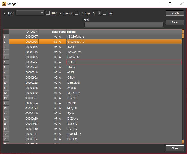 Wanneer je op deze manier een lijst met testbestanden hebt gemaakt, zal het van het type afhangen wat Detect It Easy voor informatie geeft. We bekijken als voorbeeld een png-bestand. Hier toont het programma je meteen details over de resolutie en het kleurgebruik. Klik je vervolgens op Strings, dan zien wij bij ons testbestand de aanduiding Greenshot, zodat we nu zelfs weten met welk programma dit png-bestand ooit is gemaakt. Het venster Strings kan ook zeer informatief zijn wanneer een bestand onverhoopt niet wordt herkend.