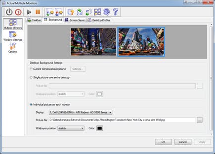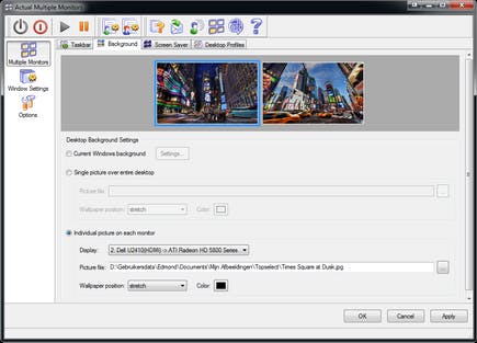Anders dan Windows kan Actual Multiple Monitors op twee monitoren twee verschillende afbeeldingen of screensavers tonen.