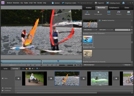 In deze nieuwe versie van Premiere Elements kunnen (HD-)filmpjes nu ook rechtstreeks vanaf een fotocamera, telefoon of ‘flip-achtige’ filmcamera worden opgehaald. Verder is de interface strakker getrokken en mooier geworden. Terugkijkend oogt de vorige versie van het programma nu wat kaaltjes. Het programma kende al behoorlijk veel effecten voor beeld en geluid, nieuw is dat u uw film in een handomdraai van een cartooneffect kunt voorzien (NewBlue Cartoonr Plus) en storende achtergrondgeluiden effectief zijn weg te filteren (NewBlue Cleaner AB). Ook een leuke toevoeging is de zogeheten web DVD. Het is alsof u een dvd maakt, maar dan eentje speciaal voor internet, inclusief menubesturing en scèneselectie.