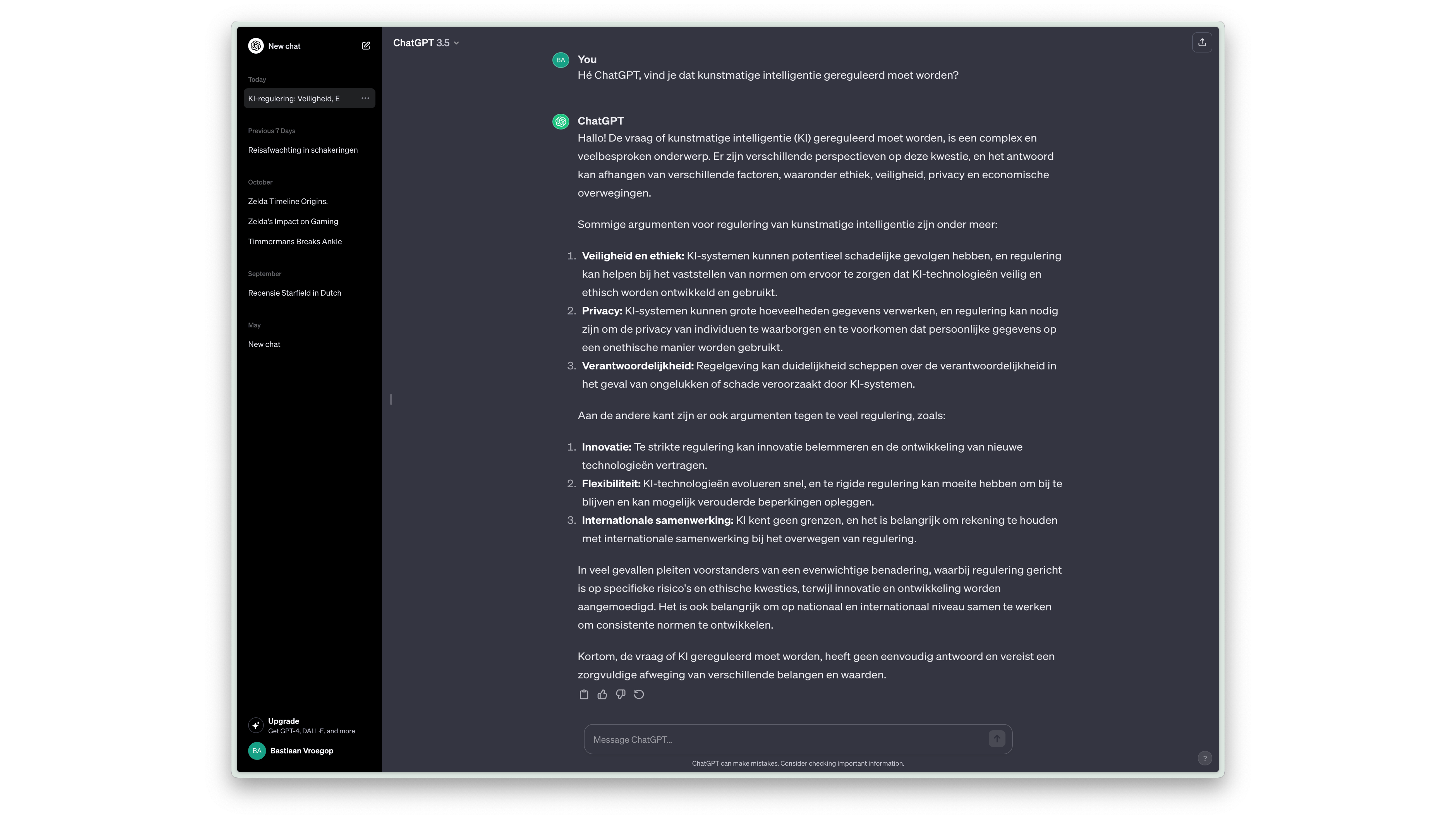 Europa doet er altijd erg lang over om nieuwe regels in te voeren, dus het zal waarschijnlijk nog jaren duren voordat de AI Act van de grond komt. Tot dan is het aan ieder land om zelf te reguleren, en in dat opzicht heeft men in Nederland op dit moment vrij spel: er zijn hier geen specifieke wetten voor AI-toepassingen aangenomen. Vraag je het ministerie van Economische Zaken hierover, dan krijg je te horen dat AI een breed begrip is en hierop ook andersoortige regels van toepassing kunnen zijn.