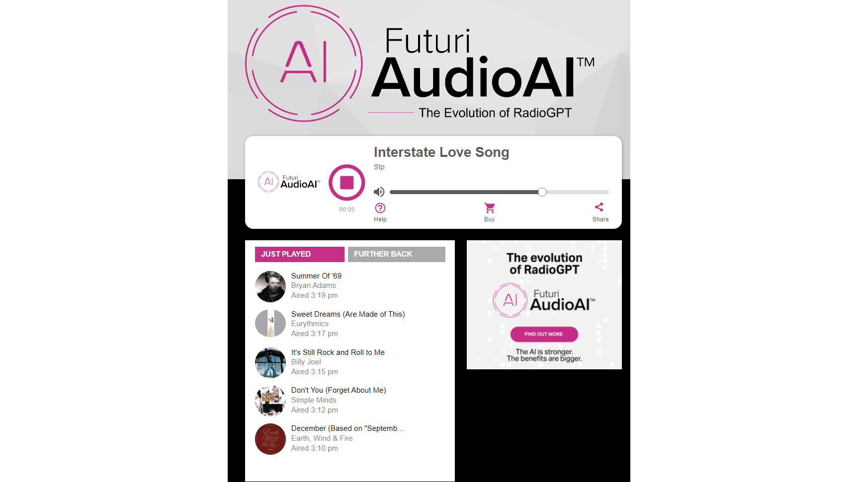 In ChatGPT kun je tegenwoordig gesproken dialogen voeren met AI, maar er zijn meer interessante AI-toepassingen in audio. Bijvoorbeeld radiostations die volledig op AI draaien. Luister bijvoorbeeld naar listen.streamon.fm/radiogpt. RadioGPT selecteert op basis van GPT en TopicPulse muziek en produceert scripts, gecombineerd met AI-spraaktechnologie, door socialmedia- en nieuwsbronnen te scannen.