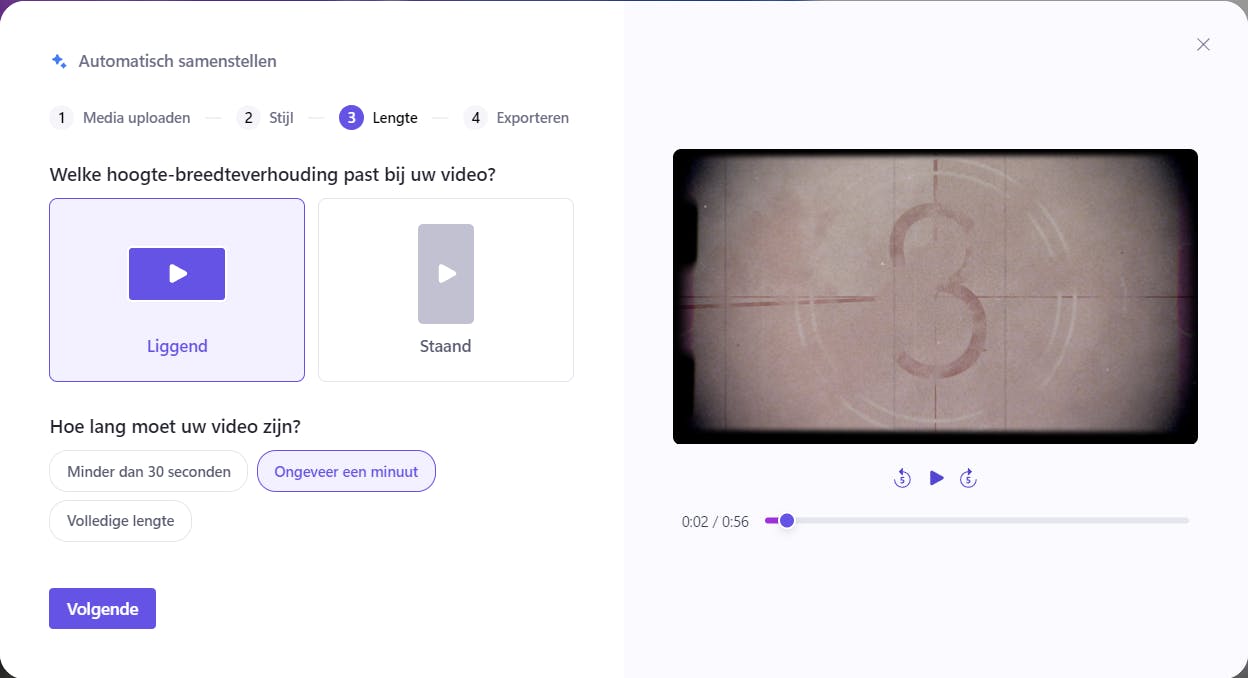 Microsoft Clipchamp, geïntegreerd in Windows, benut AI dan weer op een andere manier voor video’s. Met de knop Een video met AI maken kun je media zoals audio, video en foto’s toevoegen en nadat je informatie over de titel, stijl en gewenste lengte hebt verstrekt, genereert Clipchamp automatisch een bijpassende video.