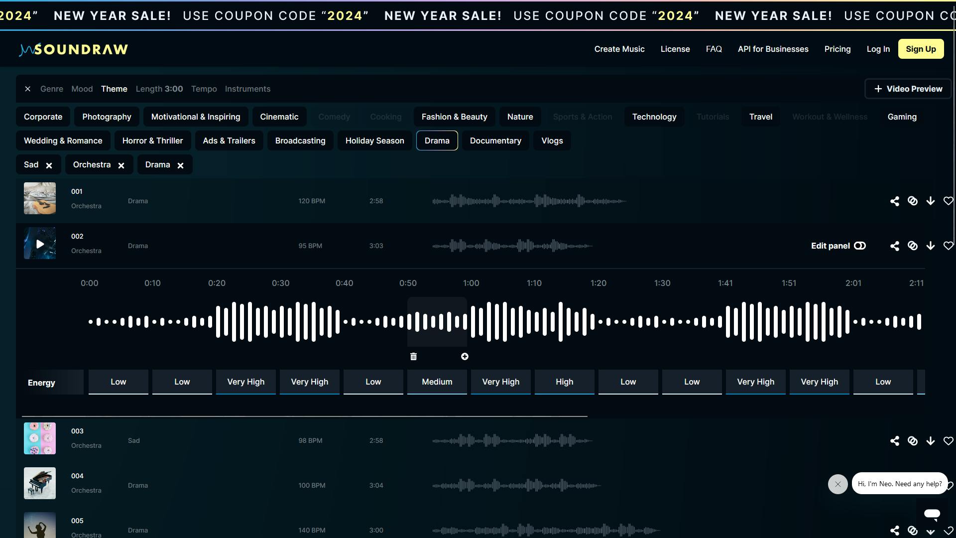 MusicGen en Riffusion zijn voorbeelden van toepassingen die werken basis van text-to-music. Er zijn ook diensten die kant-en-klare muziekjes voor je maken waarbij jij alleen de criteria kiest. Hier een SoundRaw een voorbeeld van. Dit model maakt muziek volgens de door jou ingestelde instellingen, zoals genre, stemming, gebruiksdoel en instrumentatie. Of je keuzes ook strikt worden opgevolgd, is de vraag.