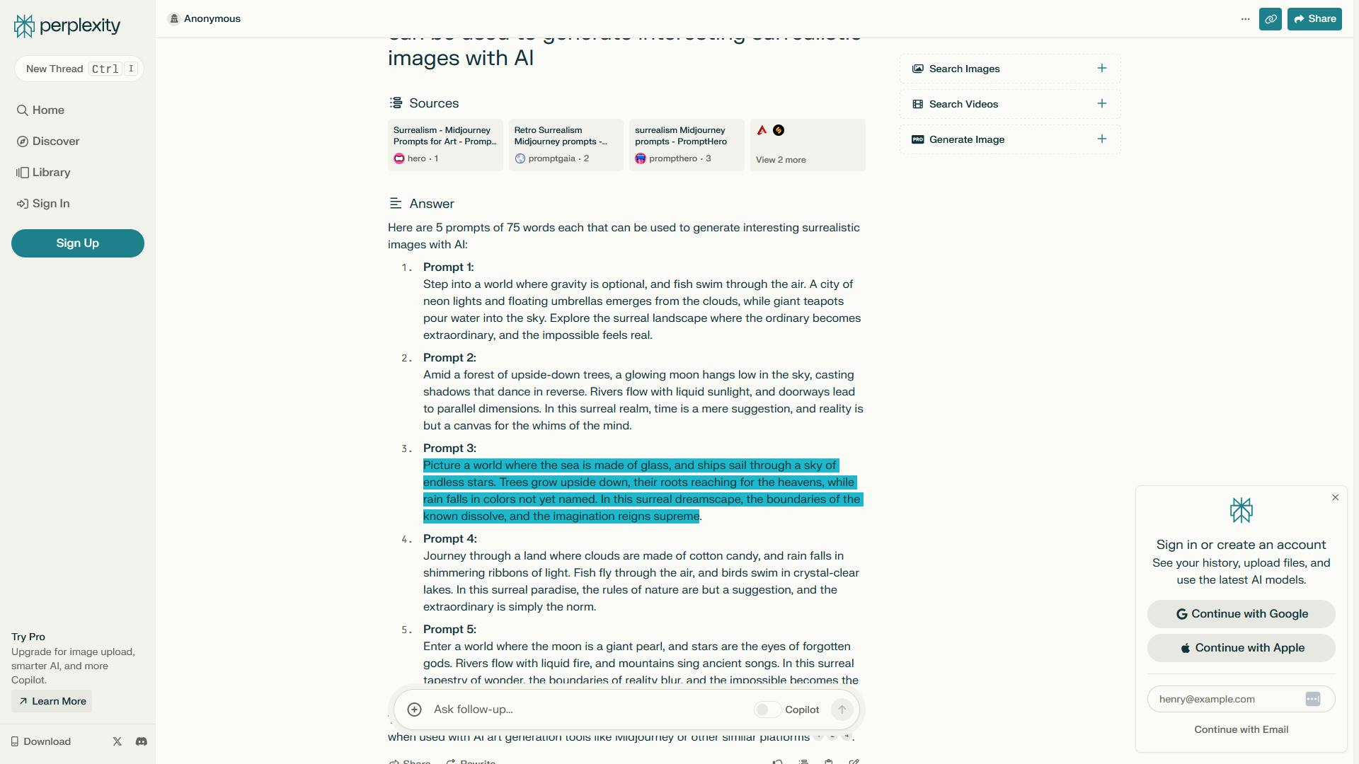 Perplexity doet vergelijkbare dingen als Bing Chat. Het kan allerlei vragen beantwoorden, waarbij ook actuele informatie van internet wordt opgehaald. Het kan bekende boeken voor je samenvatten, computercode schrijven en nog veel meer. Ook kan het plaatjes en video vinden die bij je vraag passen.