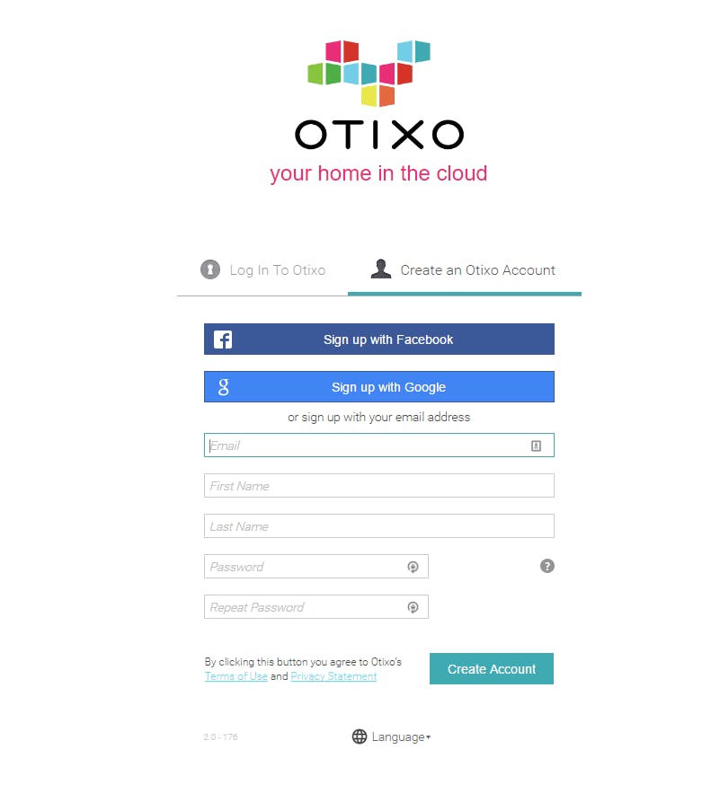 Voordat je aan de slag kunt met Otixo, zul je eerst een account aan moeten maken. Dat lijkt misschien een beetje omslachtig; een account aanmaken om een site om vervolgens andere accounts op andere sites mee te beheren. Maar neem van ons aan dat het er eenvoudiger en overzichtelijker op zal worden, niet het tegenovergestelde. Een account aanmaken is overigens niet zo heel ingewikkeld, je kunt daar eventueel je Facebook-account voor gebruiken. Wanneer je dat doet, wordt dit account alleen maar gebruikt voor je contactgegevens, Otixo kan niets op je Facebook-profiel plaatsen.