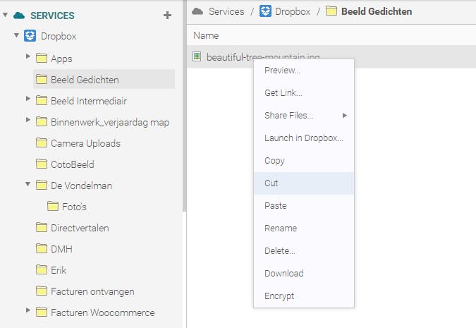 De hiervoor genoemde methode werkt snel, maar we hebben het dan wel over kopiëren. Je zult de originele bestanden handmatig nog moeten verwijderen. Wil je bestanden verplaatsen, dan kan dat ook. Navigeer naar de map waarin de bestanden (of mappen) staan die je wilt verplaatsen, rechtsklik erop en kies voor Cut. Navigeer nu naar de doelmap in de clouddienst van je keuze, rechtsklik en kies voor Paste. De bestanden worden nu verplaatst in plaats van gekopieerd. Houd overigens wel rekening met je datalimiet.