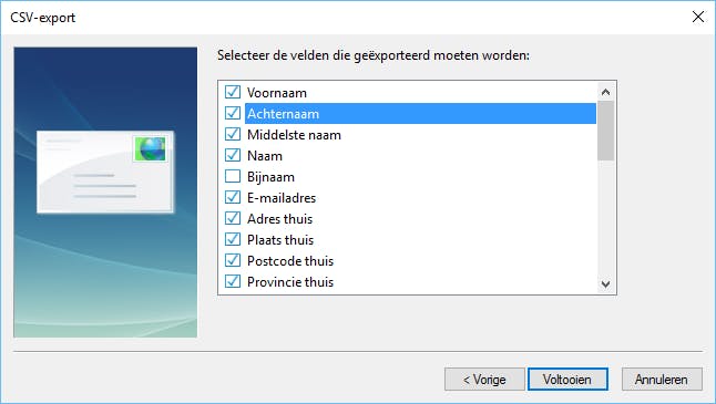 Het adresboek van Windows Live Mail zet je eveneens eenvoudig naar Thunderbird over. Klik in Microsofts afgedankte e-mailprogramma linksonder op Contactpersonen. Kies daarna voor Exporteren / Bestand met door komma’s gescheiden waarden (.CSV). Je selecteert via Bladeren een plek op de harde schijf om het databestand te bewaren, waarna je klikt op Opslaan / Volgende. Selecteer de gegevens die je wilt exporteren, zoals de achternaam, het e-mailadres en het mobiele nummer. Bevestig met Voltooien. Er bevindt zich nu een csv-bestand op je harde schijf. Je opent dit bestand eventueel in Excel om te controleren of de contactgegevens daadwerkelijk aanwezig zijn.