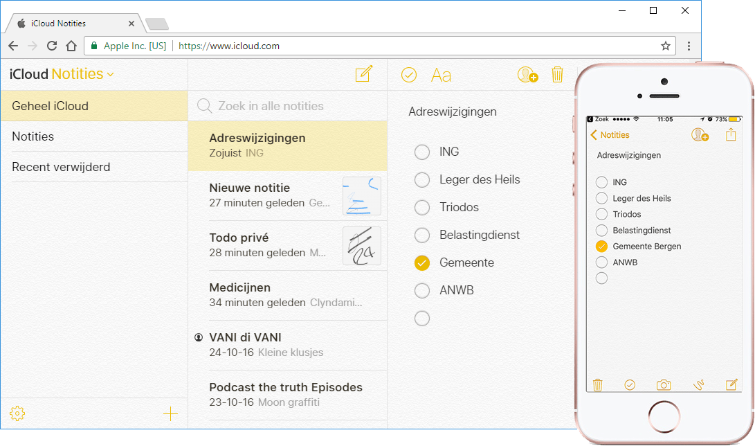 Er zijn natuurlijk veel diensten om notities mee te maken. De dienst iCloud Notities heeft één groot voordeel ten opzichte van concurrenten als OneNote en Evernote, namelijk de eenvoud. Je kunt geen mappen aanmaken, geen tags toevoegen en berichten niet in categorieën zetten. Het is net zo simpel als de standaard Windows Plaknotities, en voegt daar een essentieel onderdeel aan toe: je kunt notities delen. Uiteraard integreren iCloud-notities naadloos met een iPhone of iPad, maar ook zonder deze hardware kun je iCloud Notities gratis gebruiken.