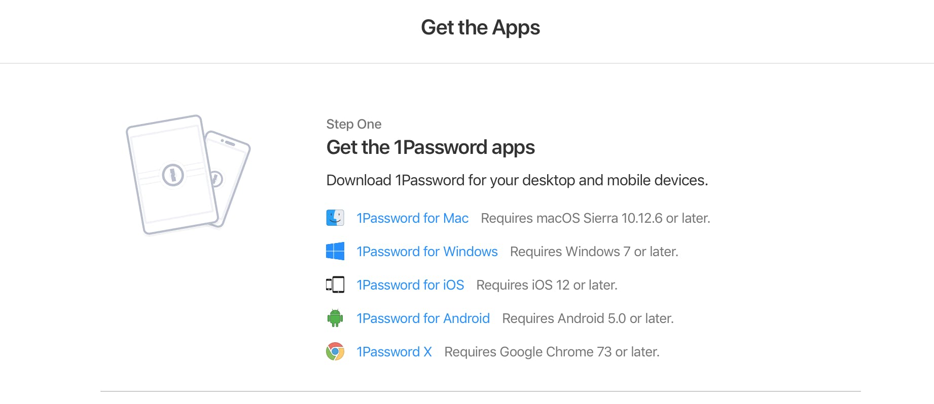 Nu is het tijd om op al je apparaten de app van 1Password te installeren. 1Password is beschikbaar voor Mac, Windows en Linux en kun je bovendien voor iOS, Android of Chrome OS downloaden. Als je op een apparaat voor de eerste keer inlogt, dan kun je handmatig de beide codes invoeren of de qr-code gebruiken die in je account wordt weergegeven. De code vind je door op Get the apps te klikken, bij Step Two zie je de code staan. In de mobiele app kun je bij Instellingen / Beveiliging kiezen of je Vingerafdruk ontgrendeling aanzet.