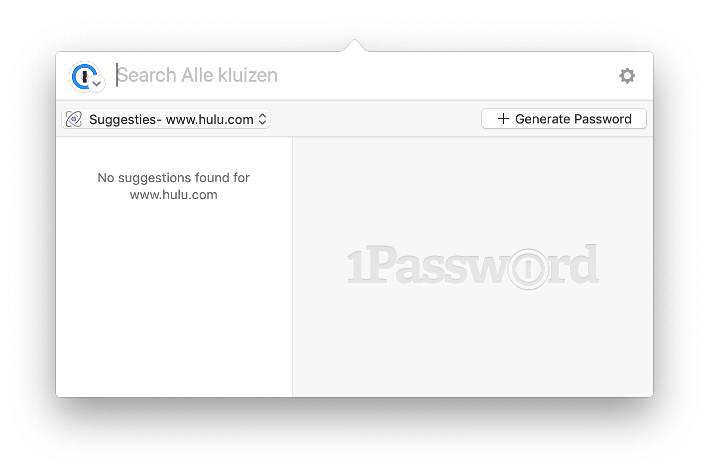 Als 1Password de dienst niet herkend, kun je zoeken naar wachtwoorden. Tenminste, in de desktopversies van de app. Klik op het icoontje in de statusbalk van Windows of macOS en geef je zoekopdracht in op het veld Search Alle kluizen. Met de desktopversie kun je 1Password ook automatisch een sterk wachtwoord laten genereren. Klik op + Generate Password. Je merkt dat de Nederlandse vertalingen af en toe een beetje achterblijven, sommige onderdelen zijn wel vertaald, bij andere onderdelen moet je het doen met de Engelse termen.