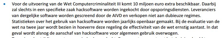 Tot slot moeten er ieder jaar statistieken openbaar worden gemaakt over welke hacksoftware is gekocht en hoe vaak dat is ingezet.