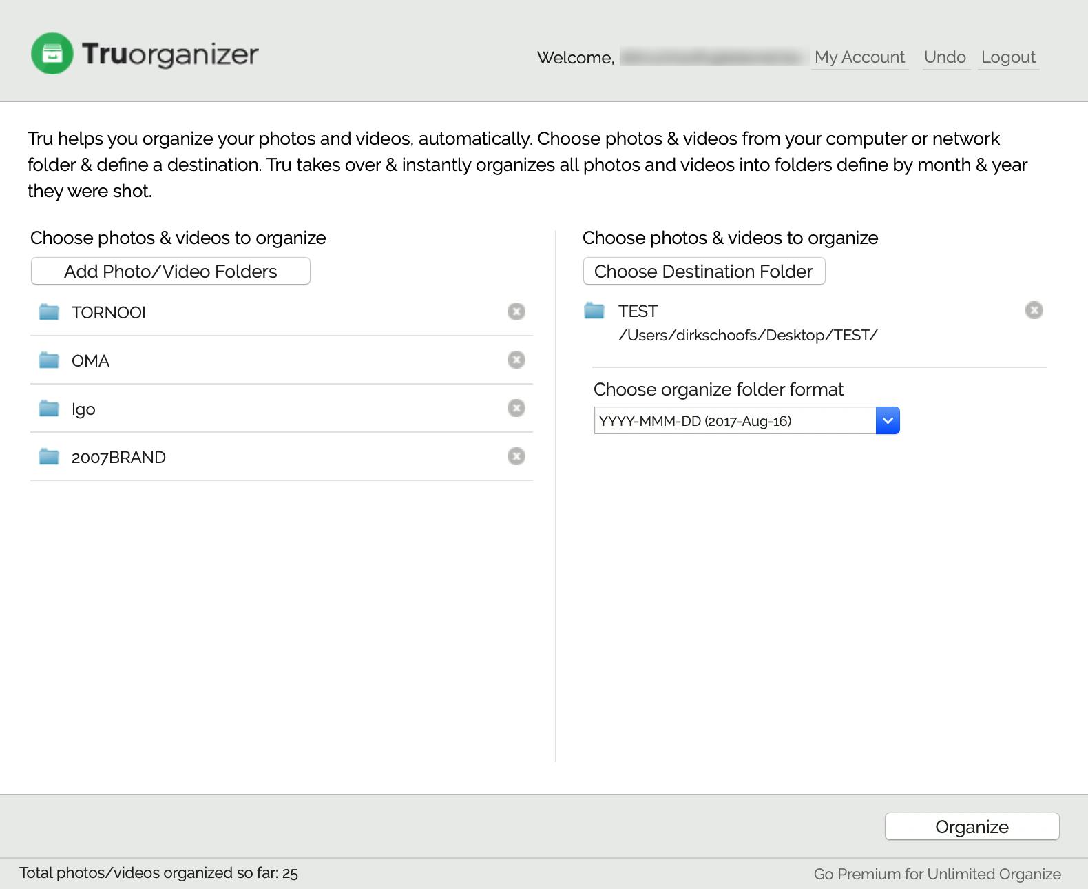 Maak je ontzettend veel foto’s, dan kan het handiger zijn om deze per dag of per maand te ordenen. Tru is een tool waarmee je eerst een bronmap met ongeordende fotobestanden selecteert op een drive, bijvoorbeeld de lokale Dropbox-map. Daarna maak je in dezelfde directory een nieuwe lege doelmap. Vervolgens zal Tru op de achtergrond de inhoud van de bronmap naar de doelmap overbrengen en per maand of dag mappen genereren. Je hebt de keuze tussen submappen volgens het YYYY-MMM-formaat (bijvoorbeeld 2017-aug), het YYYY-MM-formaat (bijvoorbeeld 2017-08) of YYYY-MMM-dd (bijvoorbeeld 2017-aug-16). Je kunt ook verschillende bronmappen selecteren om ze vervolgens allemaal naar dezelfde doelmap per dag of per maand over te zetten. Met de gratis versie kun je 5.000 foto’s op die manier verdelen, wil je dit onbeperkt doen, dan moet je 19,95 dollar per jaar betalen.