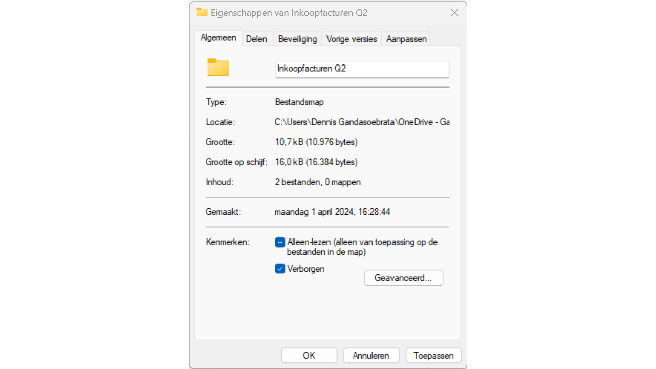 Mappen verbergen in Windows Soms wil je in Windows bepaalde mappen niet zien, maar ze niet verbergen of afschermen voor anderen. Je hebt bijvoorbeeld een groot aantal mappen voor een archief, maar die heb je niet altijd nodig. Je kunt de mappen dan verbergen. Open verkenner. Blader naar de map die je wilt verbergen en klik hierop met de rechtermuisknop. Kies Eigenschappen. Op de tab Algemeen plaats je een vinkje bij Verborgen. Bevestig met een klik op OK: de map is niet meer zichtbaar.