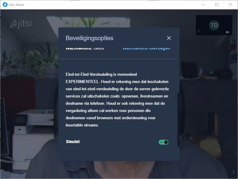 Ook Jitsi ondersteunt inmiddels deze encryptie, weliswaar nog in bèta-versie en met recente browsers of via de eigen Electron-client. Jitsi laat zich trouwens ook op een eigen server hosten.
