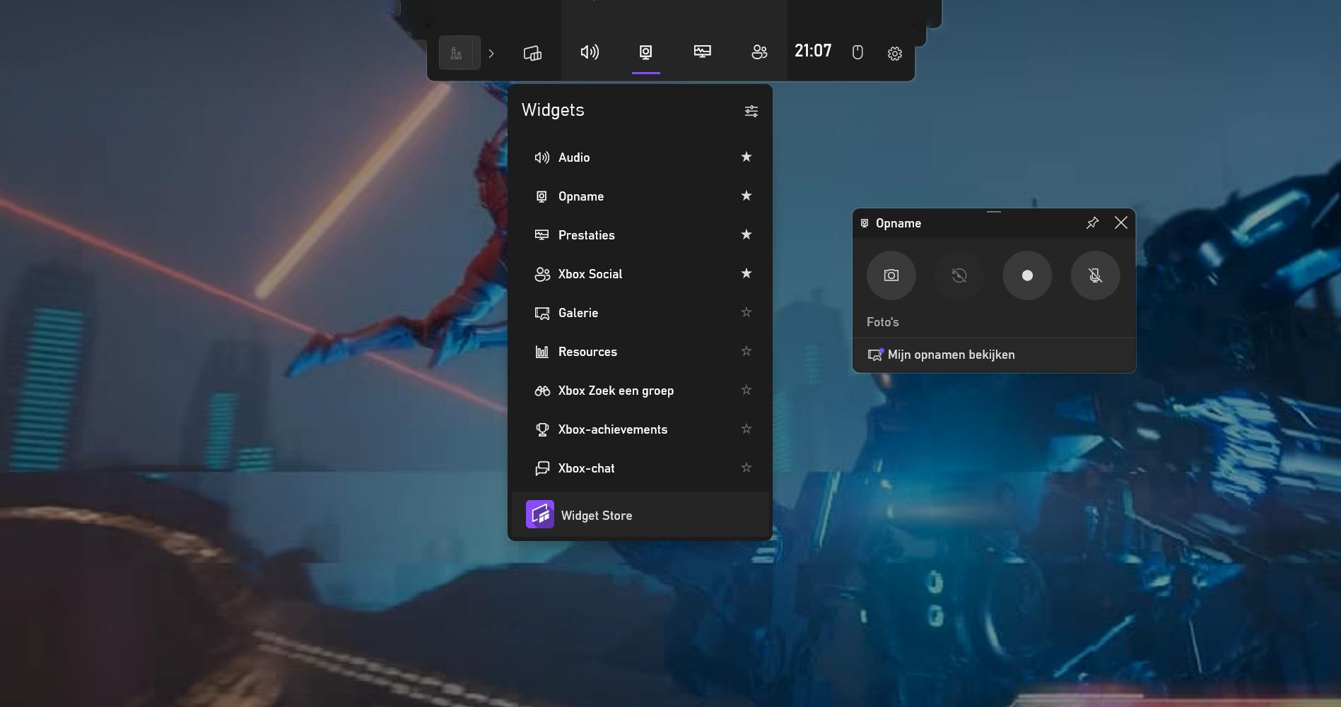 Ook Window 11 is voorzien van de Game Bar om video’s en schermafbeeldingen te maken, terwijl je games op de pc speelt. Druk op Windows-toets+G om de Game Bar te openen. Heb je een Xbox 360- of Xbox One-controller op je pc aangesloten, dan gebruik je de Xbox-knop. In het balkje kies je het menu Widget waar je Opname selecteert. Vervolgens kun je de cameraknop gebruiken om de schermafbeelding te maken. Het is ook mogelijk om met de sneltoets Windows-toets+Alt+PrtScn een screenshot van het volledige scherm vast te leggen. De schermafbeelding wordt opgeslagen als een png-bestand in de map Schermafdrukken.