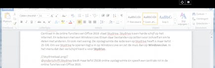 U kunt een document direct openen om het te bewerken, maar u kunt er ook voor kiezen om het eerst te 'previewen' en dan pas te beslissen of u het wilt openen. Hiertoe zet u de muis niet stil boven het document om in de extra opties te kiezen voor Bewerken in de browser, maar klikt u direct met de muis op het document in uw SkyDrive-locatie. Even later is het document in een preview geopend. U kunt er met de pijltjes helemaal rechts doorheen bladeren en via de knoppen links kunt u bovendien kiezen voor Bewerken in browser of Openen in Word. Dit is handig als u niet helemaal zeker weet of het document dat u hebt geselecteerd daadwerkelijk het document is dat u wilt gebruiken.