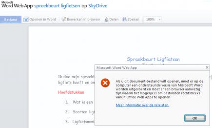 Bij het opslaan en openen van een document op SkyDrive wil een Office-programma nog wel eens even haperen.