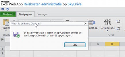 Opvallend aan de Web-apps van Excel en PowerPoint is het ontbreken van de knop Opslaan. Waarom dit anders is dan in Word Web App is onbekend, maar Excel en PowerPoint Web App werken op dit punt hetzelfde als Google Docs. Wijzigingen worden direct bewaard; 'opslaan' als actieve handeling bestaat in feite dus niet.