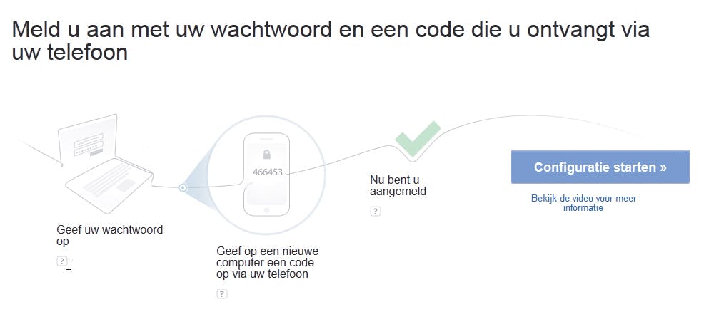 5. Nu krijgt u een scherm waarin u het telefoonnummer moet invoeren waarop u de authenticatiecodes gaat ontvangen. U kunt verder nog bepalen of u een sms of een spraakoproep wilt ontvangen. De laatste optie is eigenlijk alleen interessant voor blinden of slechtzienden. Klik op de knop ‘Code verzenden’ om de eerste zescijferige code te ontvangen.
