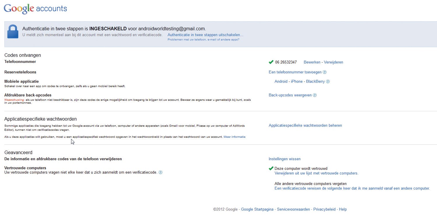 8. We zijn er bijna. In Stap 4 kunt u de instellingen bevestigen, waarna u alleen nog kunt inloggen op uw Google-account met een loginnaam, wachtwoord, en een verificatiecode die u per sms ontvangt. De enige uitzondering is op dit moment de pc waarop u de instellingen aan het doen bent. U ontvangt een e-mail als bevestiging van de nieuwe beveiligingsinstellingen met extra informatie.