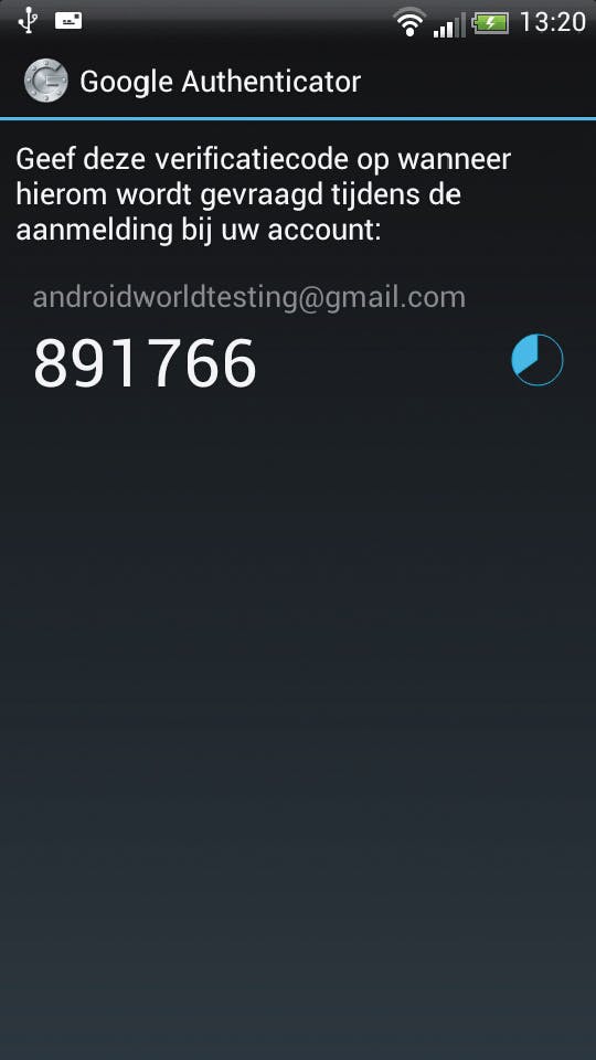 De app maakt nu om de dertig seconden een nieuwe code aan voor het inloggen op Google-diensten (afbeelding 13). Het voordeel is dat u niet meer apart op een smsje moet wachten, en bovendien kunt u dit ook gebruiken zonder internetverbinding op uw telefoon. Hebt u problemen met de codes, kijk dan of de tijd goed is ingesteld op uw telefoon.