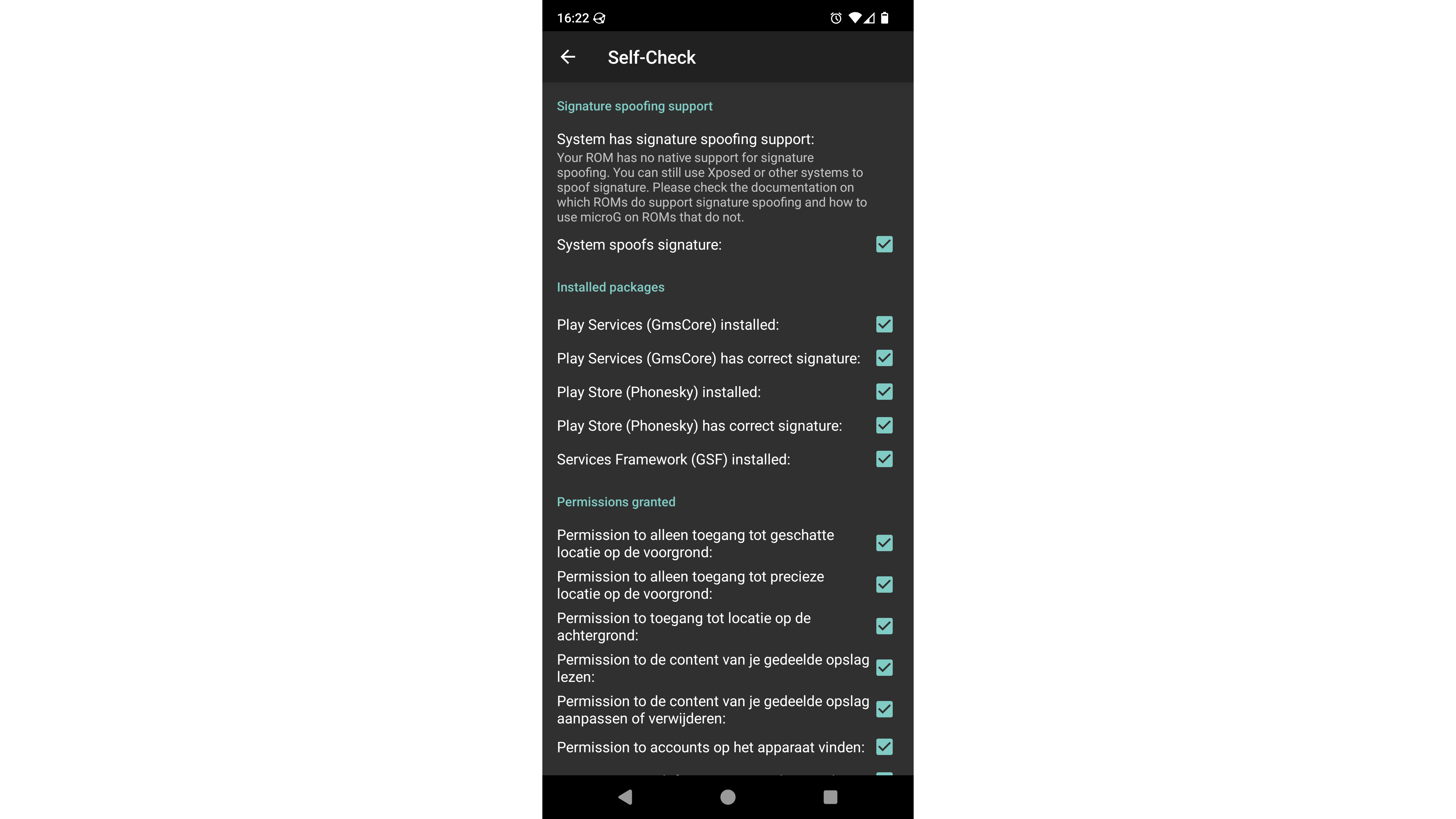 Geef microG alle permissies die het nodig heeft om zijn taken uit te voeren.