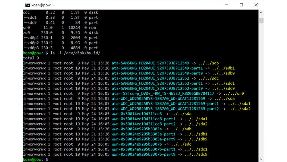 De namen blijven immers niet gegarandeerd hetzelfde; de ID’s wel. Een ID ziet er bijvoorbeeld uit als ata-SAMSUNG_HD204UI_S2H7J9JB712549. Daarna dien je nog de sectorgrootte van je harde schijven te weten. Voor moderne harde schijven is dat 4 kilobyte, maar sommige liegen en geven 512 bytes weer als je het vraagt, omdat Windows XP problemen heeft met 4 kilobyte.