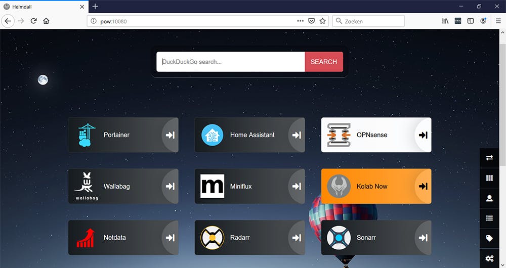 Het concept van Heimdall klinkt misschien wat simpel en nutteloos: het is een eenvoudige webserver met één webpagina waaraan je icoontjes van webapplicaties kunt toevoegen. Meer niet. Maar als je zoals in het geval van Ansible-NAS allerlei diensten installeert die elk hun eigen webinterface hebben, verlies je al gauw het overzicht als je niet één plaats hebt waarvandaan je ze allemaal kunt bereiken. Daarin blinkt Heimdall uit, dat standaard op poort 10080 van je nas draait.