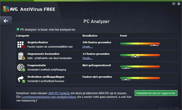 AVG scoort op de beveiliging een 4,5 uit 6, wat dezelfde score is als Windows Defender. Vooral de detectie van de meest voorkomende malware uit de laatste vier weken voor de test is laag en zit beduidend onder het gemiddelde. Daarbij markeerde AVG tweemaal een regulier programma als malware. Omdat AV-Test de variant AVG Internet Security met extra beveiligingsfuncties testte, kunnen de scores voor AVG Antivirus Free in theorie zelfs nog lager liggen. Daarbij is de gebruiksvriendelijkheid laag en verzamelt AVG gegevens over de gebruiker zonder een optie om dit te stoppen. Wij zien dus geen reden om voor AVG te kiezen.
