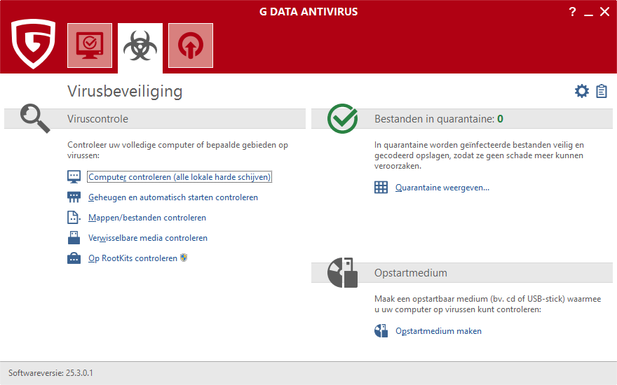 Vooral de manier waarop G Data het internetbankieren beveiligt is mooi. G Data doet dit niet met een aparte browser of via sandboxing, maar door enkele voor de beveiliging van een websessie essentiële browserbestanden (dll’s) te bewaken. Een ander uniek onderdeel is Keyboard Guard dat beschermt tegen keyloggers. De interface bestaat uit drie delen: het securitycenter voor statusinformatie en toegang tot alle onderdelen, het onderdeel virusbeveiliging voor scans en het maken van een opstart-cd en de Auto-startmanager. De score voor het herkennen van malware maximaal, maar minder goed is de impact op de systeemprestaties, al zal dat bij deze Antivirus-versie minder zijn dan bij de door AV-Test geteste Internet Security-variant van G Data. G Data levert een heel fijn pakket, getuige ook de opnieuw maximale score op de algehele bruikbaarheid van de pc na installatie van G Data.
