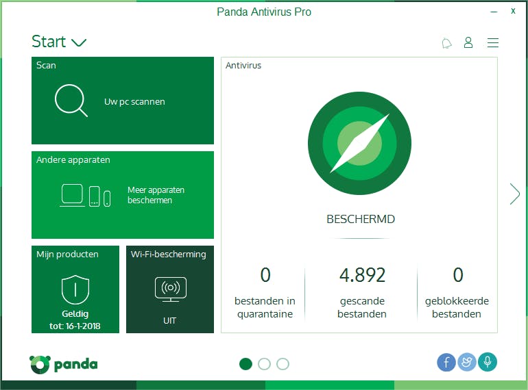 Panda Free biedt bescherming tegen malware en phishing en heeft als extra’s een procesmonitor die de gedragingen op de pc controleert en de mogelijkheid usb-media automatisch te scannen. De betaalde versie Antivirus Pro voegt hier een eigen firewall met heel veel opties aan toe, plus een virtueel toetsenbord tegen keyloggers en een scan van de wifi-beveiliging. Toch scoort Panda overall zelfs nog lager dan Windows Defender met slechts 14 van maximaal 18 punten, waar Windows Defender er 15 haalt. Het grootste manco is – bij het door AV-Test geteste Panda Security Protection – de te hoge impact op het systeem en het grote aantal false postives. De door ons functioneel geteste Free Antivirus en Antivirus Pro zullen vermoedelijk beter scoren doordat deze minder functionaliteit hebben, waardoor deze het systeem ook minder zullen belasten.