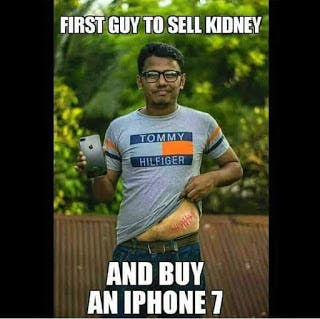 Tijdens de release van de iPhone 7 circuleerde er in India een foto op social media met een iPhone-eigenaar die zijn nier had verkocht. In het land met 1,3 miljard inwoners is een iPhone een luxe-product.