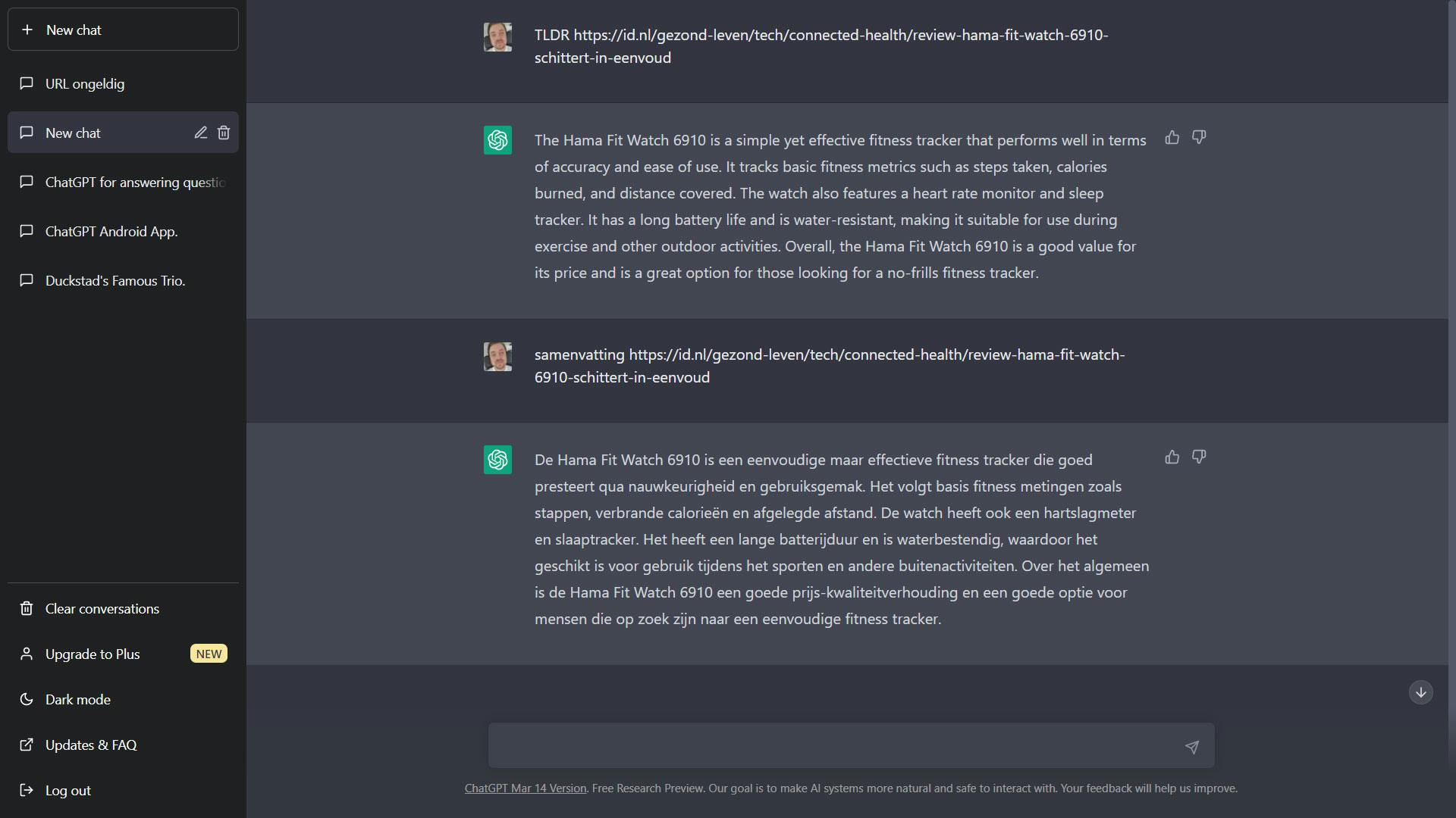 We hebben de optie om artikelen samen te vatten diverse keren getest en moeten zeggen dat die tot nog toe gemengde resultaten oplevert. Zo vroegen we de AI om onze review van de Hama Fit Watch 6910 samen te vatten en daar kwam een verrassende vergelijking met de review uit. Er staan wel wat tekstuele fouten in, maar de boodschap is helder. Echter, opvallend is dat de AI de negatieve aspecten overslaat en zich voornamelijk lijkt te richten op de positieve kanten van het verhaal. Reden te meer om dergelijke artikelen dus zelf helemaal door te nemen voordat je iets aanschaft.