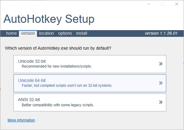 heb je natuurlijk een programma nodig dat die scripts kan uitvoeren (interpreter). Die vind je hier. Je gaat bij voorkeur voor de recentste stabiele versie, op het moment van dit schrijven is dat versie 1.1.26.01. Je kunt kiezen tussen een Express Installation en een Custom Installation. We raden je aan voor de Custom installation te gaan, al was het maar om op de diverse tabbladen de verschillende opties even te bekijken. Tenzij je scripts op een 32bit-systeem moeten kunnen draaien, kies je bij voorkeur voor Unicode 64-bit. Bevestig met Install.