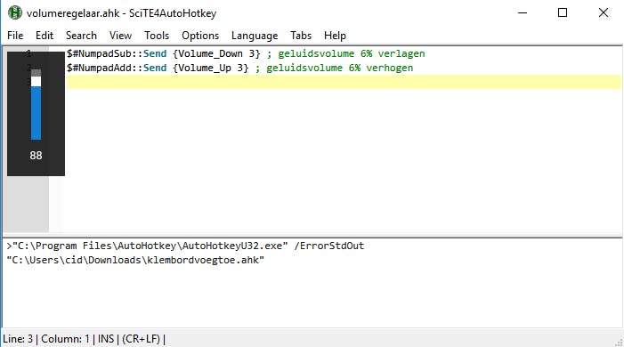 $#NumpadSub:: Send {Volume_Down 3} ; geluid 6% verlagen