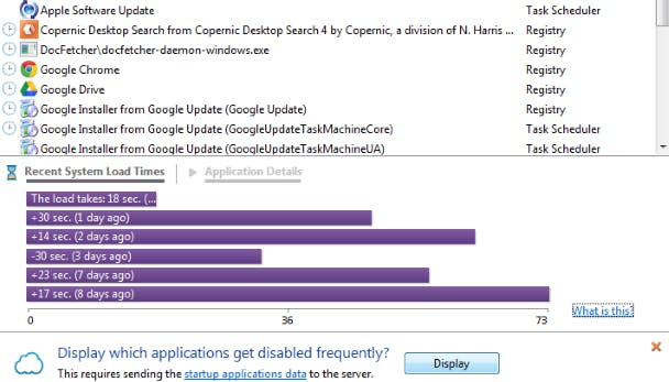 Ben je bereid de lijst met gedetecteerde programma's naar de makers te sturen (dat kan met één druk op de knop), dan krijg je als beloning extra informatie. Zo kom je te weten hoeveel procent van de medegebruikers bepaalde toepassingen heeft uitgeschakeld of ze vertraagd laat opstarten.