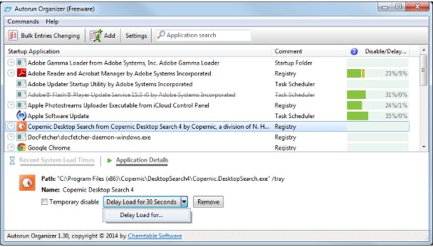 Deze feedback maakt het wellicht makkelijker te beslissen of je zelf een toepassing (tijdelijk) wilt deactiveren of - voor zover dat mogelijk is - met enkele tientallen seconden vertraging wilt laten opstarten. Wil je verschillende items tegelijk op dezelfde manier behandelen, dan moet je wel eerst even de knop Bulk Entries Changing indrukken. Blijft de twijfel, dan stuur je vanuit het contextmenu de naam van een geselecteerde toepassing meteen naar je standaardzoekmachine op internet. Mogelijk brengt die informatie dan uitkomst.
