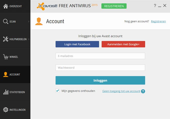 Avast! Free Antivirus 2015 beschermt tegen virussen, spyware en andere malware. Tijdens de installatie kun je al twee plugins toevoegen voor extra beveiliging. De eerste scant het thuisnetwerk op kwetsbaarheden en slaat bijvoorbeeld alarm wanneer een pc in het thuisnetwerk vanaf het internet benaderd kan worden. Ook controleert het op basale wijze de beveiliging van bijvoorbeeld de router. De tweede invoegtoepassing richt zich op de browser-extensies en toolbars. Het helpt deze te verwijderen en controleert de reputatie van deze uitbreidingen die vaak ongemerkt op de pc worden geinstalleerd. Wat Free Antivirus niet biedt en de betaalde producten van Avast! wel is ondermeer extra veilig internetbankieren, bescherming tegen hijacking, een Avast firewall, antispam, een automatische kwetsbaarheidsscanner én je persoonlijke gegevens beschermen. Let bij de installatie goed op, anders installeer je niet de gratis Free Antivirus maar een dertig dagen versie van de betaalde Avast Internet Security. Om Avast! Free Antivirus langer te gebruiken is registratie verplicht, je krijgt dan een licentie voor één jaar.